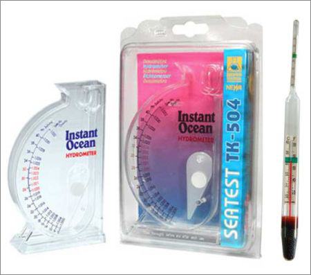 So ziemlich das wichtigste im Meeresaquarium, neben den Wasserwerten natürlich, ist der Salzgehalt des Wassers. Da wir keinen Hundegaumen haben und es nicht Schmecken können, braucht man ein Hilfsmittel - den Ärometer, auch Dichtemesser genannt. Die Funktion ist denkbar einfach: ins Wasser damit und ablesen. Einzelheien zum Salzgehalt des Wassers unter der Rubrik "Wasser" nachlesen! Die Dichtemesser gibt es Digital mit Sensor (teuer!), als 'Tacho' oder als Schwimmer (mit oder ohne integriertem Thermometer).